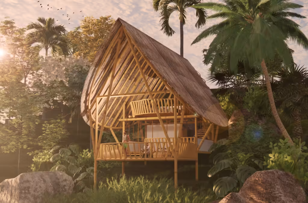 Considerado por muitos como o material do futuro, o bambu desempenha um papel central neste projeto. Sua sustentabilidade, resistência, leveza e estética natural convergem em uma construção que encanta não somente aos olhos, mas que também é respeitosa com o meio ambiente.