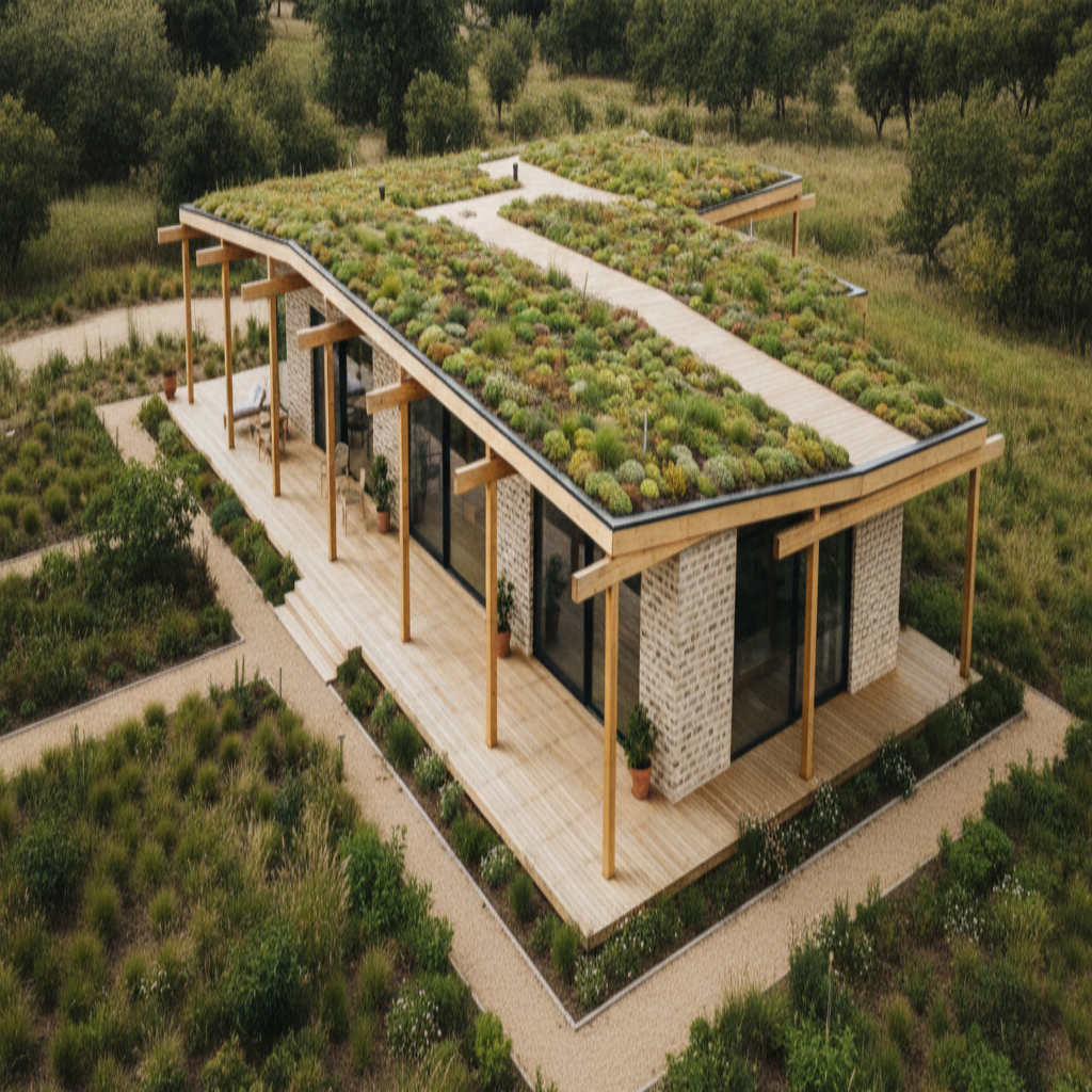 2. Tijolo Ecológico + Telhado Verde: O Duplo Isolamento Natural